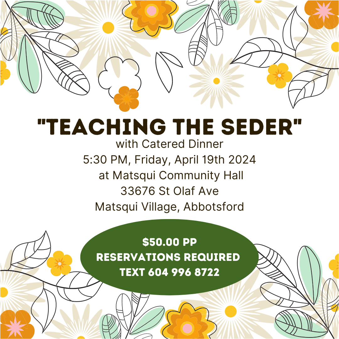 Join us for a unique and enlightening evening as we delve into the traditions of Passover with "Teaching the Seder." Enjoy a beautifully catered dinner and immerse yourself in the rich stories and rituals that have been passed down through generations.
